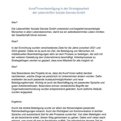 Kund*innenbeteiligung in der Strategiearbeit der Lebenshilfen Soziale Dienste GmbH